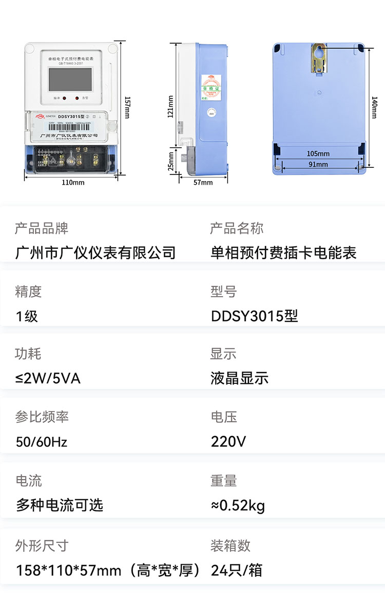 DDSY3015型单相电子式预付费电能表